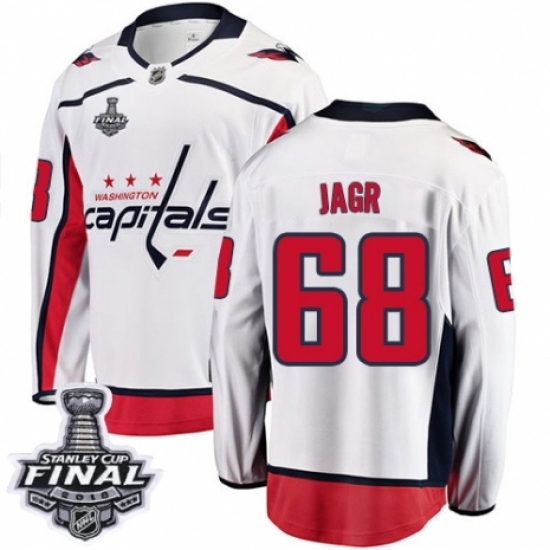 • Men's Washington Capitals #68 Jaromir Jagr Fanatics Branded White Away Breakaway 2018 Stanley Cup Final NHL Jersey