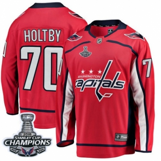 • Men's Washington Capitals #70 Braden Holtby Fanatics Branded Red Home Breakaway 2018 Stanley Cup Final Champions NHL Jersey