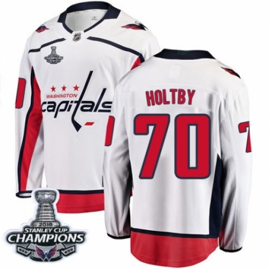 Men's Washington Capitals #70 Braden Holtby Fanatics Branded White Away Breakaway 2018 Stanley Cup Final Champions NHL Jersey