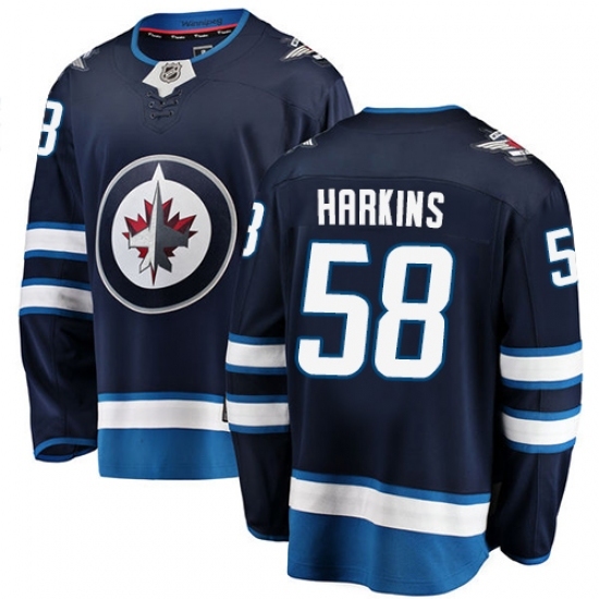 • Men's Winnipeg Jets #58 Jansen Harkins Fanatics Branded Navy Blue Home Breakaway NHL Jersey