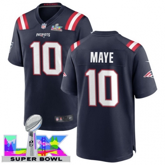 New England Patriots #10 Drake Maye Blue 2025 2026 Super Bowl LX F U S E Stitched NFL Jersey