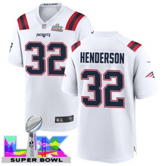 New England Patriots #32 TreVeyon Henderson White 2025 2026 Super Bowl LX F U S E Stitched NFL Jersey