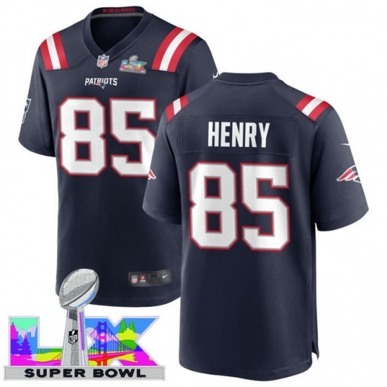 • New England Patriots #85 Hunter Henry Blue 2025 2026 Super Bowl LX F U S E Stitched NFL Jersey