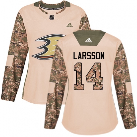 • Women's Adidas Anaheim Ducks #14 Jacob Larsson Authentic Camo Veterans Day Practice NHL Jersey