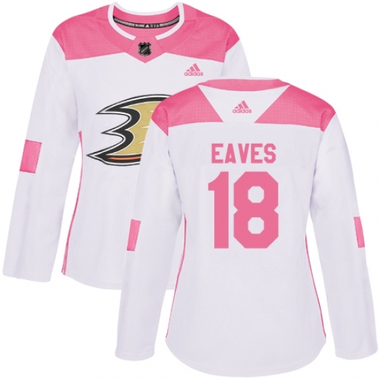 Women's Adidas Anaheim Ducks #18 Patrick Eaves Authentic White/Pink Fashion NHL Jersey