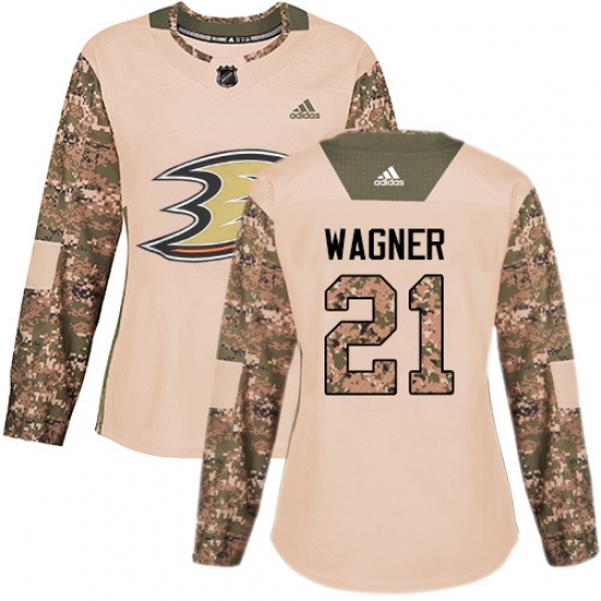 • Women's Adidas Anaheim Ducks #21 Chris Wagner Authentic Camo Veterans Day Practice NHL Jersey