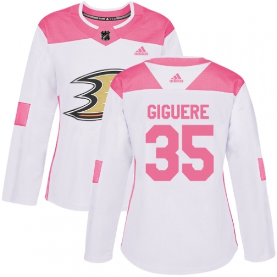 Women's Adidas Anaheim Ducks #35 Jean-Sebastien Giguere Authentic White/Pink Fashion NHL Jersey