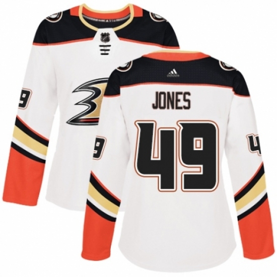 • Women's Adidas Anaheim Ducks #49 Max Jones Authentic White Away NHL Jersey