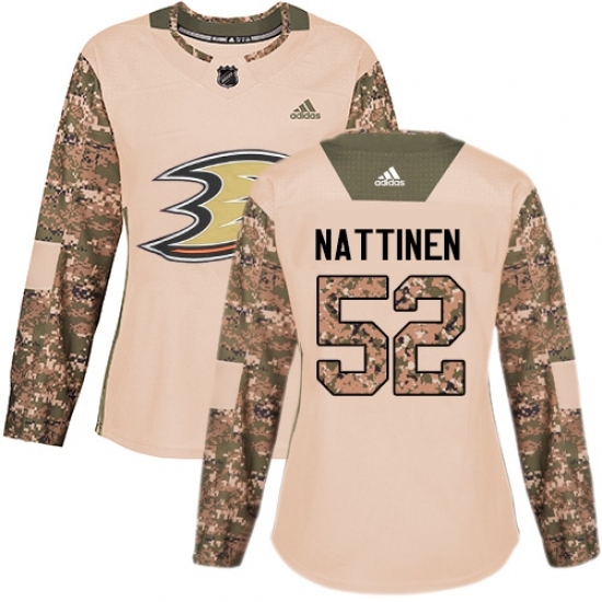 • Women's Adidas Anaheim Ducks #52 Julius Nattinen Authentic Camo Veterans Day Practice NHL Jersey