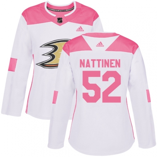 • Women's Adidas Anaheim Ducks #52 Julius Nattinen Authentic White/Pink Fashion NHL Jersey
