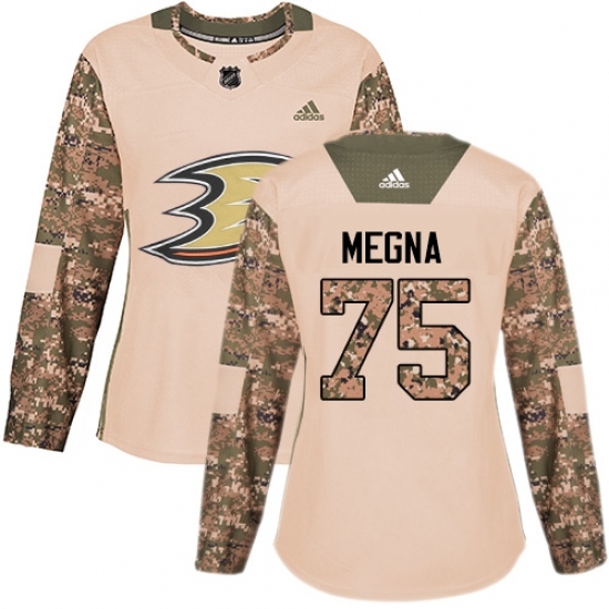• Women's Adidas Anaheim Ducks #75 Jaycob Megna Authentic Camo Veterans Day Practice NHL Jersey