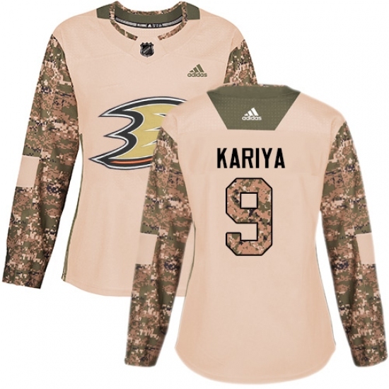 • Women's Adidas Anaheim Ducks #9 Paul Kariya Authentic Camo Veterans Day Practice NHL Jersey