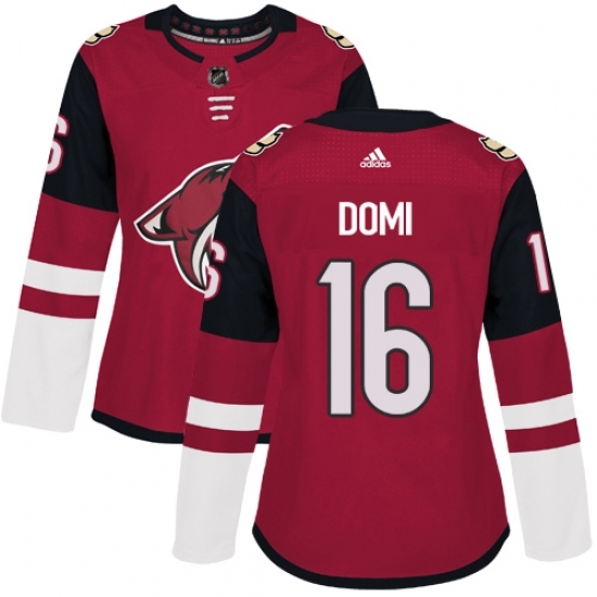 • Women's Adidas Arizona Coyotes #16 Max Domi Authentic Burgundy Red Home NHL Jersey