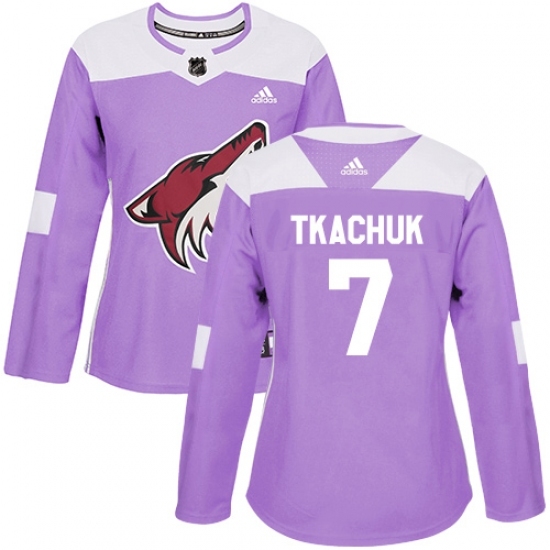 • Women's Adidas Arizona Coyotes #7 Keith Tkachuk Authentic Purple Fights Cancer Practice NHL Jersey