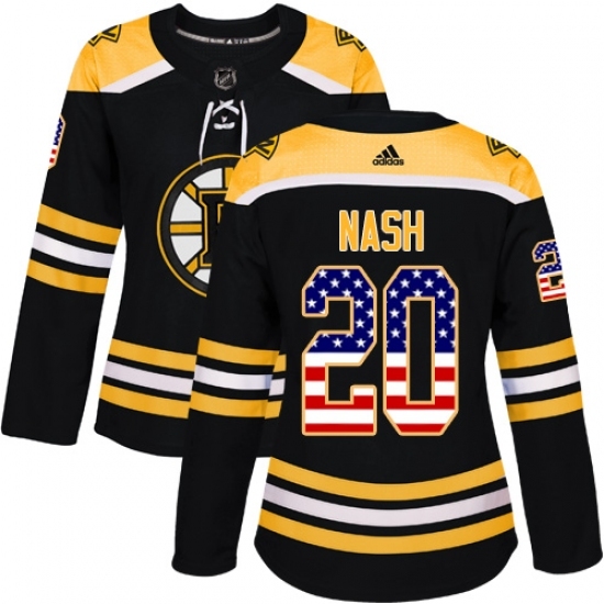 Women's Adidas Boston Bruins #20 Riley Nash Authentic Black USA Flag Fashion NHL Jersey