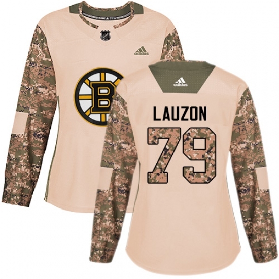 • Women's Adidas Boston Bruins #79 Jeremy Lauzon Authentic Camo Veterans Day Practice NHL Jersey