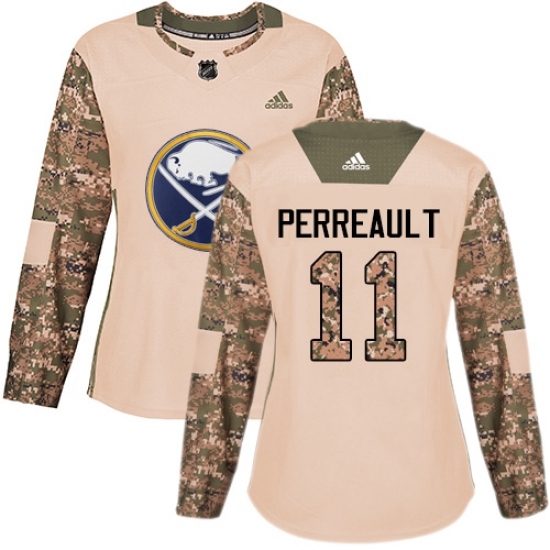 • Women's Adidas Buffalo Sabres #11 Gilbert Perreault Authentic Camo Veterans Day Practice NHL Jersey