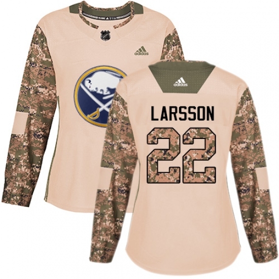 • Women's Adidas Buffalo Sabres #22 Johan Larsson Authentic Camo Veterans Day Practice NHL Jersey