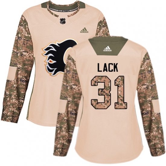 • Women's Adidas Calgary Flames #31 Eddie Lack Authentic Camo Veterans Day Practice NHL Jersey