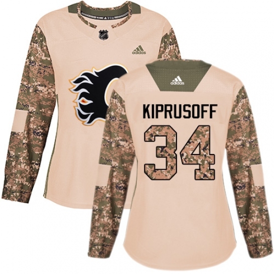 • Women's Adidas Calgary Flames #34 Miikka Kiprusoff Authentic Camo Veterans Day Practice NHL Jersey