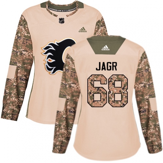 • Women's Adidas Calgary Flames #68 Jaromir Jagr Authentic Camo Veterans Day Practice NHL Jersey