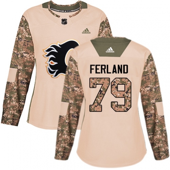 • Women's Adidas Calgary Flames #79 Michael Ferland Authentic Camo Veterans Day Practice NHL Jersey