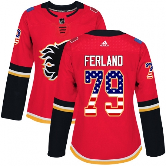 Women's Adidas Calgary Flames #79 Michael Ferland Authentic Red USA Flag Fashion NHL Jersey