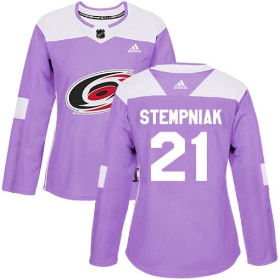 Women's Adidas Carolina Hurricanes #21 Lee Stempniak Authentic Purple Fights Cancer Practice NHL Jersey
