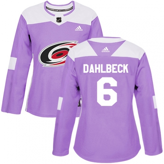 Women's Adidas Carolina Hurricanes #6 Klas Dahlbeck Authentic Purple Fights Cancer Practice NHL Jersey