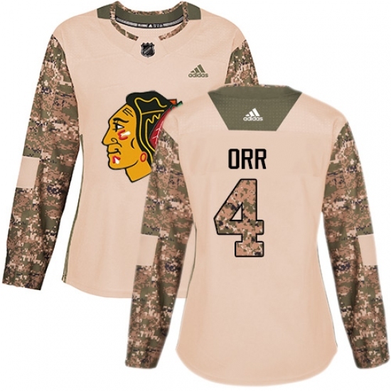 • Women's Adidas Chicago Blackhawks #4 Bobby Orr Authentic Camo Veterans Day Practice NHL Jersey