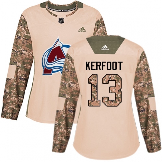 • Women's Adidas Colorado Avalanche #13 Alexander Kerfoot Authentic Camo Veterans Day Practice NHL Jersey