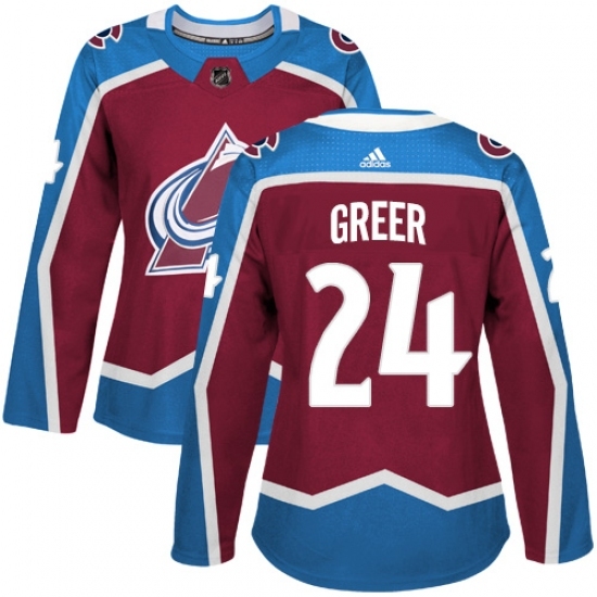 Women's Adidas Colorado Avalanche #24 A.J. Greer Authentic Burgundy Red Home NHL Jersey