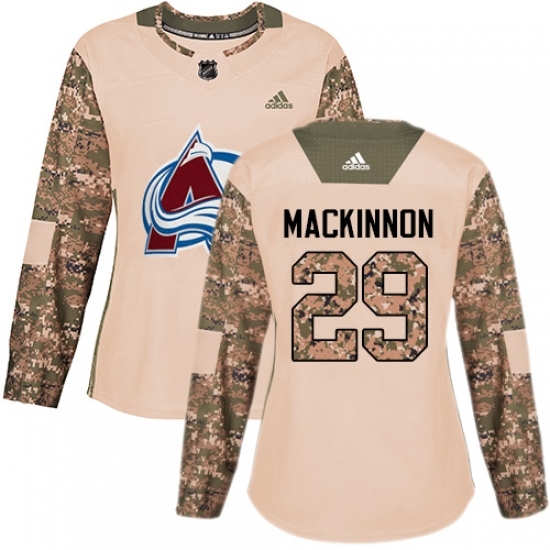 Women's Adidas Colorado Avalanche #29 Nathan MacKinnon Authentic Camo Veterans Day Practice NHL Jersey