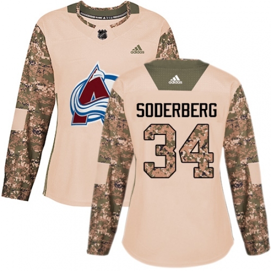 Women's Adidas Colorado Avalanche #34 Carl Soderberg Authentic Camo Veterans Day Practice NHL Jersey