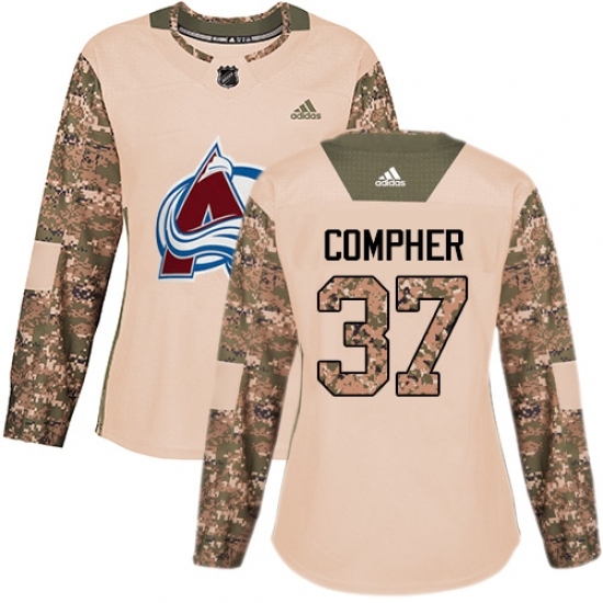 • Women's Adidas Colorado Avalanche #37 J.T. Compher Authentic Camo Veterans Day Practice NHL Jersey