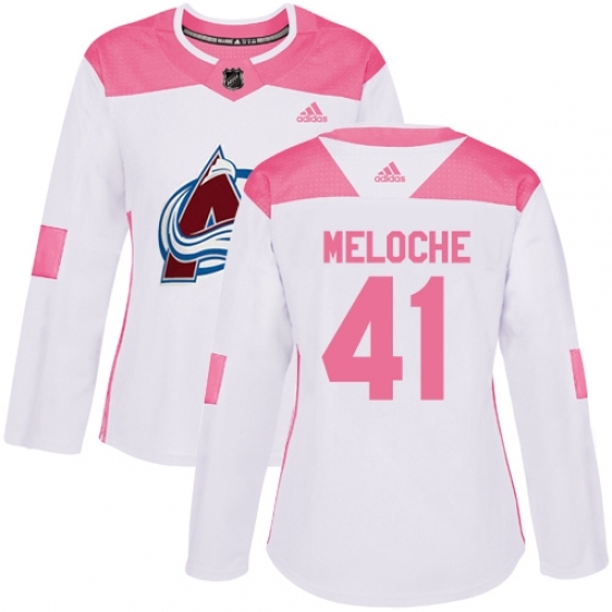 Women's Adidas Colorado Avalanche #41 Nicolas Meloche Authentic White/Pink Fashion NHL Jersey