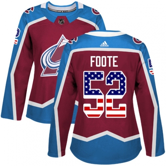 Women's Adidas Colorado Avalanche #52 Adam Foote Authentic Burgundy Red USA Flag Fashion NHL Jersey