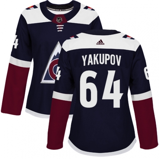 • Women's Adidas Colorado Avalanche #64 Nail Yakupov Authentic Navy Blue Alternate NHL Jersey
