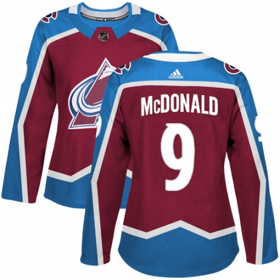 Women's Adidas Colorado Avalanche #9 Lanny McDonald Authentic Burgundy Red Home NHL Jersey