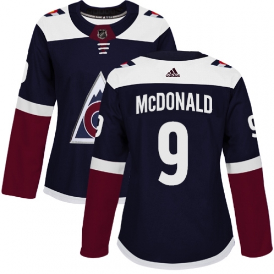 Women's Adidas Colorado Avalanche #9 Lanny McDonald Authentic Navy Blue Alternate NHL Jersey
