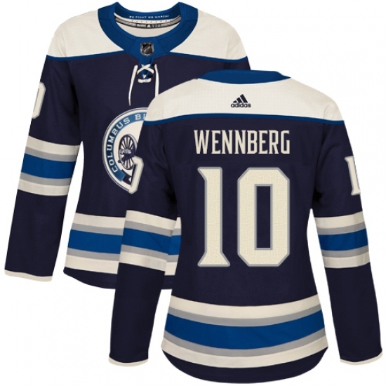 • Women's Adidas Columbus Blue Jackets #10 Alexander Wennberg Authentic Navy Blue Alternate NHL Jersey