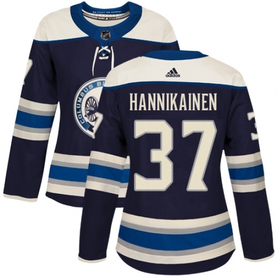 • Women's Adidas Columbus Blue Jackets #37 Markus Hannikainen Authentic Navy Blue Alternate NHL Jersey