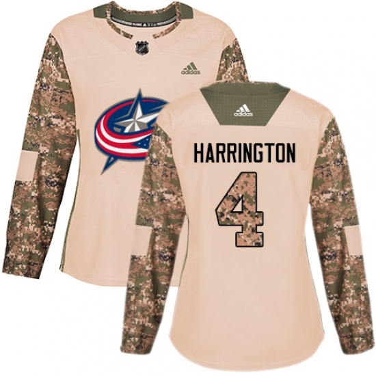 Women's Adidas Columbus Blue Jackets #4 Scott Harrington Authentic Camo Veterans Day Practice NHL Jersey