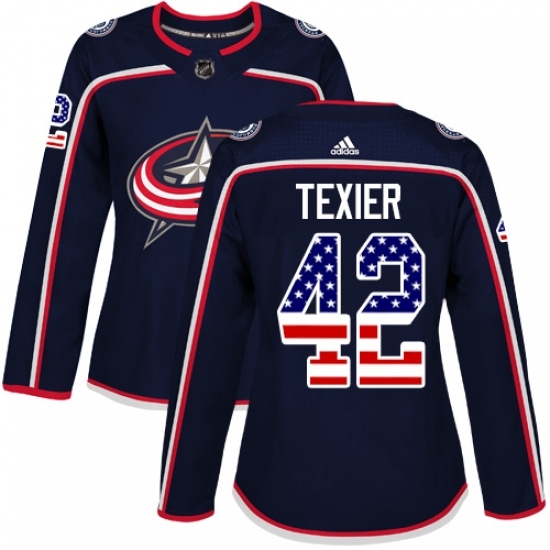 Women's Adidas Columbus Blue Jackets #42 Alexandre Texier Authentic Navy Blue USA Flag Fashion NHL Jersey