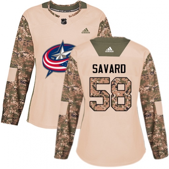 • Women's Adidas Columbus Blue Jackets #58 David Savard Authentic Camo Veterans Day Practice NHL Jersey