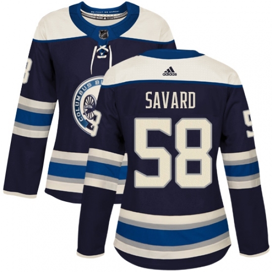 Women's Adidas Columbus Blue Jackets #58 David Savard Authentic Navy Blue Alternate NHL Jersey