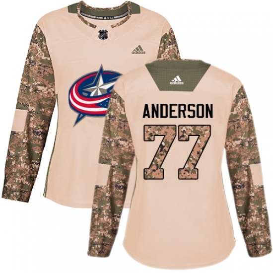 • Women's Adidas Columbus Blue Jackets #77 Josh Anderson Authentic Camo Veterans Day Practice NHL Jersey