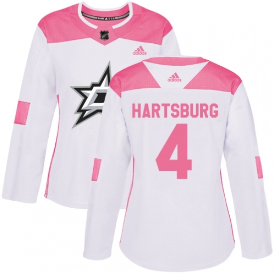 Women's Adidas Dallas Stars #4 Craig Hartsburg Authentic White/Pink Fashion NHL Jersey