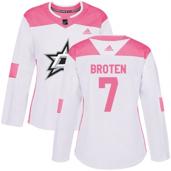 • Women's Adidas Dallas Stars #7 Neal Broten Authentic White/Pink Fashion NHL Jersey