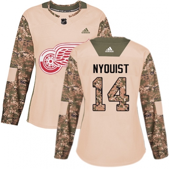 • Women's Adidas Detroit Red Wings #14 Gustav Nyquist Authentic Camo Veterans Day Practice NHL Jersey